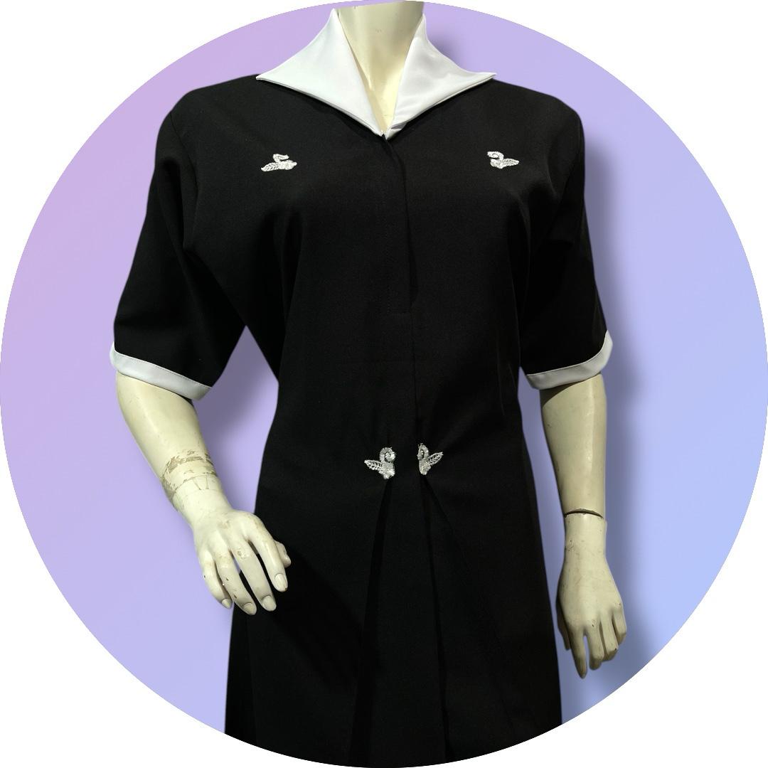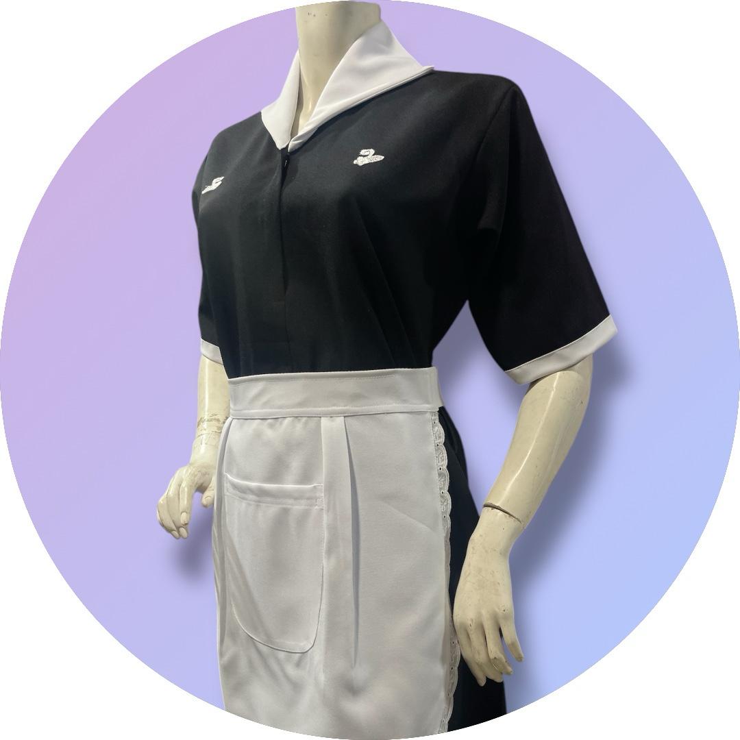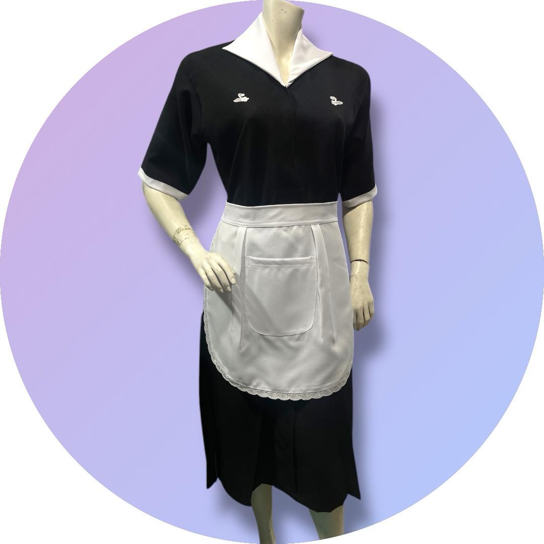 دريس للضيافة مميز بخامة عالية  الجودة كريب تم تصميمه ليتناسب مع بيئة العمل مريح بخامة خفيفة بالأضافة الى مريول من اختيارك متوفر منه ثلاث تصاميم مختلفة مناسب للاستقبال متوفر ب لون أسود ملكي , مقاسات : S _ M _XXL _XL