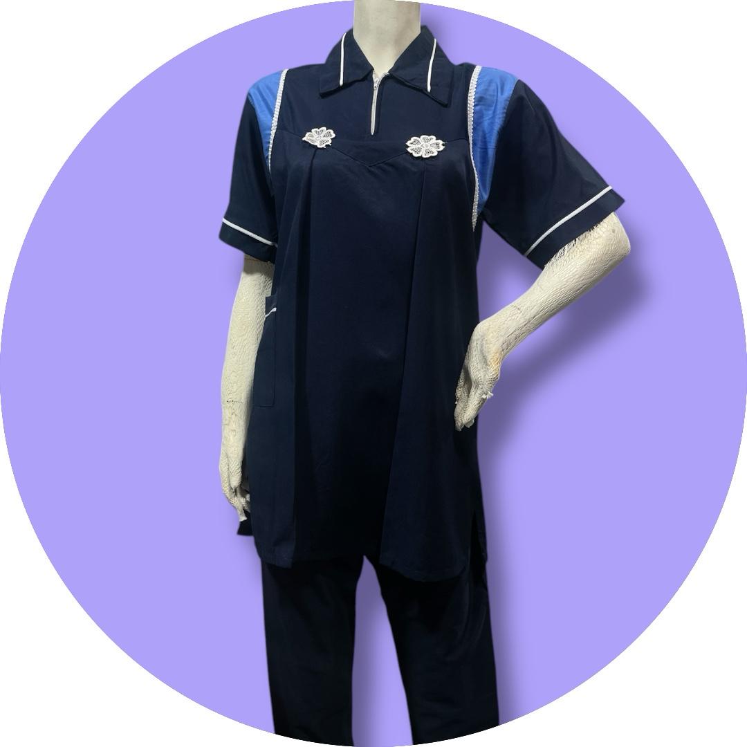 يونيفورم سوري قماش قبردين قماش ناعم ذو لمعة خفيفة عملي يتناسب مع بيئة العمل والأجواء الصيفية قماش بارد وتصميم أنيق متوفر منه ألوان مختلفة : كحلي _ أخضر _ أزرق ومتوفر منه مقاسات : S _M _L_XL .