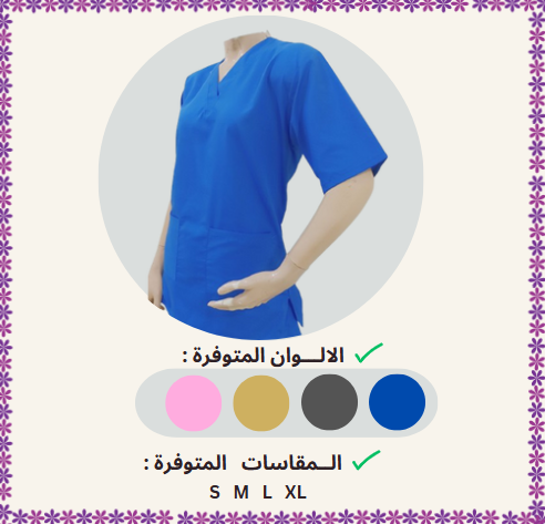 موديل عصري و انيق يناسب جميع بيئات العمل. مصنوع من قماش قطن تيترون رفيع عالي الجودة متوفر ب 5 الوان مميزة لتلبي جميع الأذواق. المقاسات : S – M – L – XL .