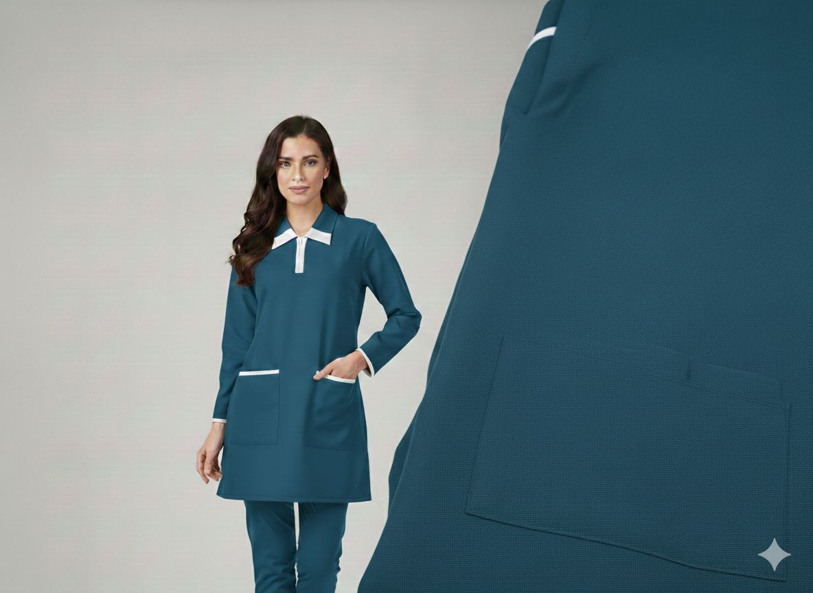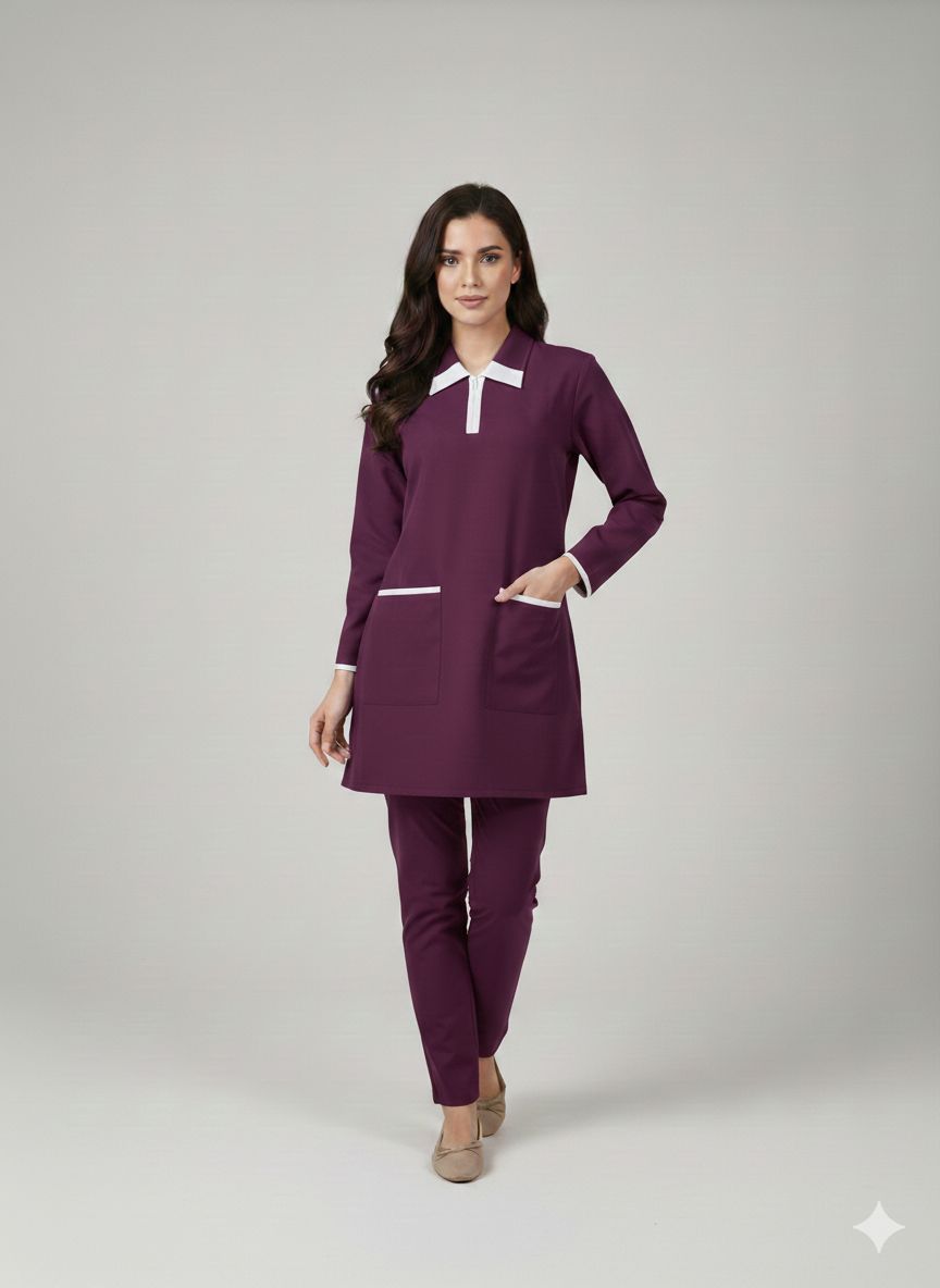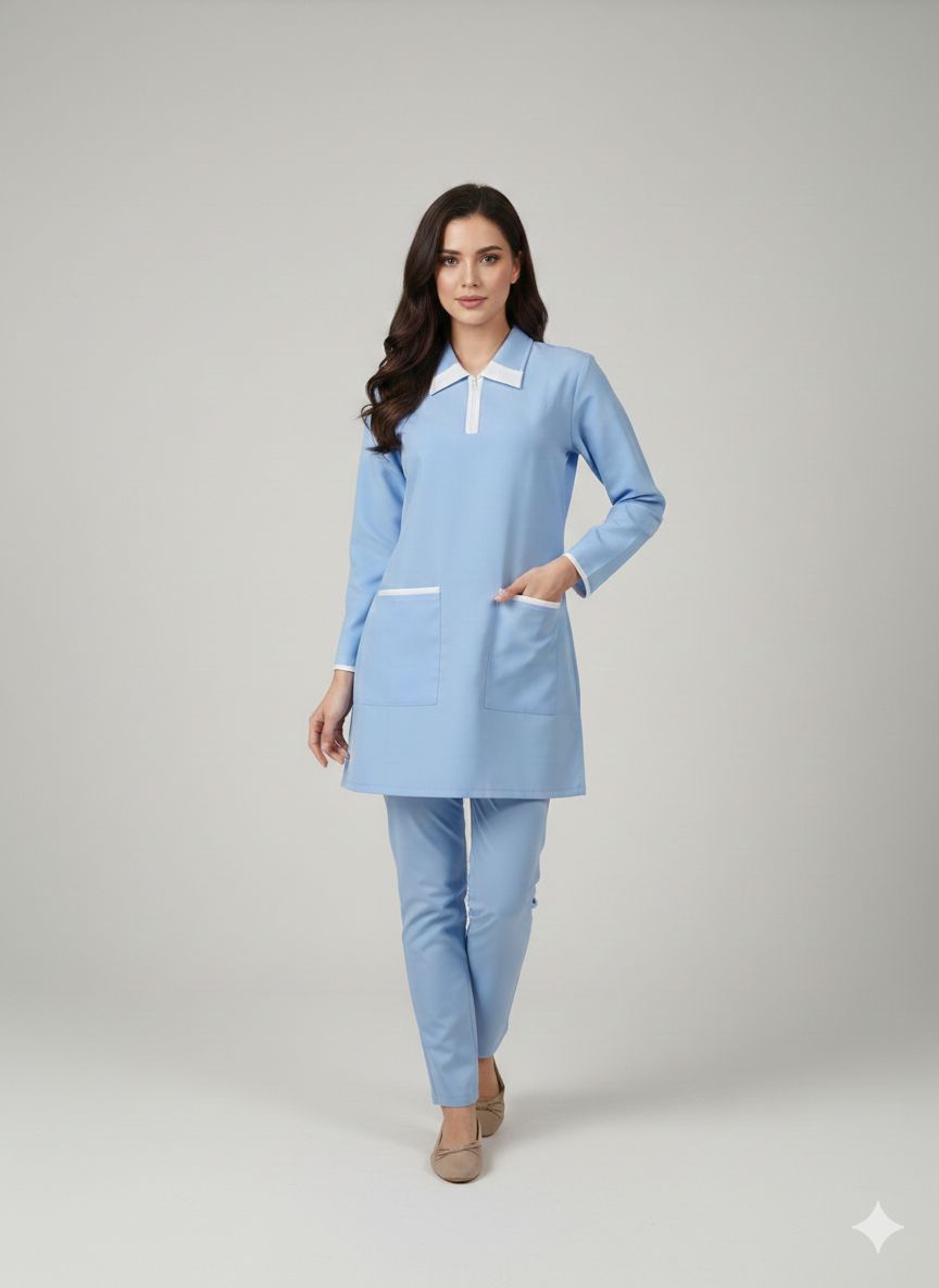 يونيفورم كويتي قماش كريب مناسب للاستقبال قماش متين ومريح للعمل متوفر منه مقاسات وألوان مختلفة .