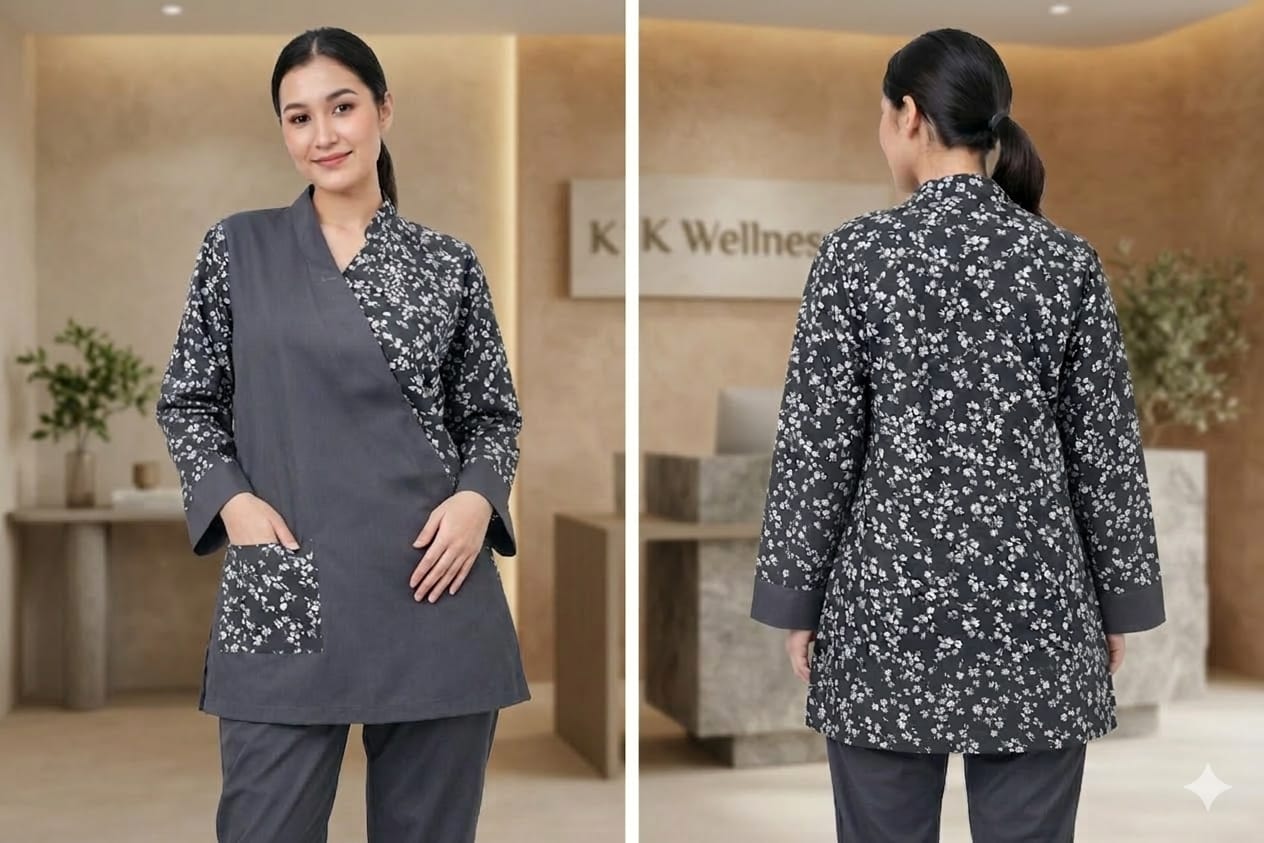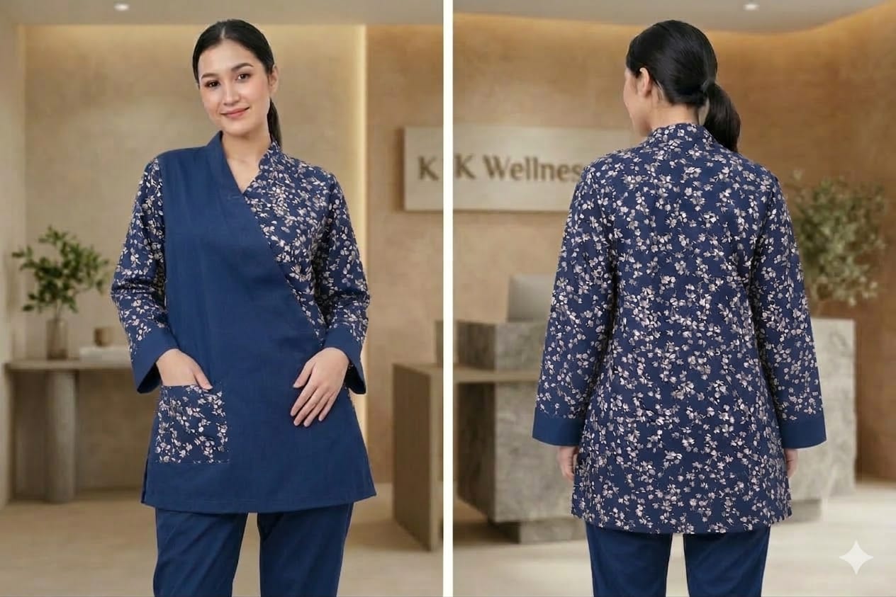 يونيفورم كويتي قماش كريب مشجر تصميم أنيق مناسب للاستقبال مريح أثناء العمل متوفر ب ألوان مختلفة  ومقاسات مختلفة .