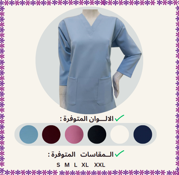موديل عصري و انيق يناسب جميع بيئات العمل. مصنوع من قماش كريب رفيع عالي الجودة متوفر ب 6 الوان مميزة لتلبي جميع الأذواق. المقاسات : S – M – L – XL – XXL .